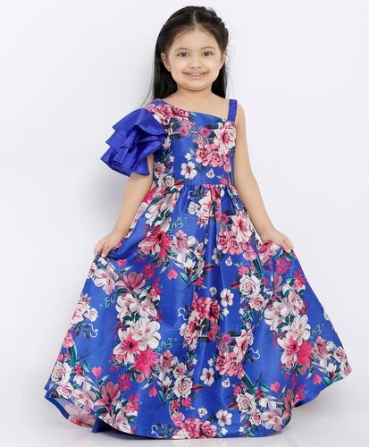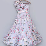 in Girls Pink & Grey Floral Printed Silk Frock