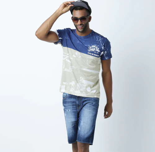 in Huetrap Men Beige & Black Tshirt